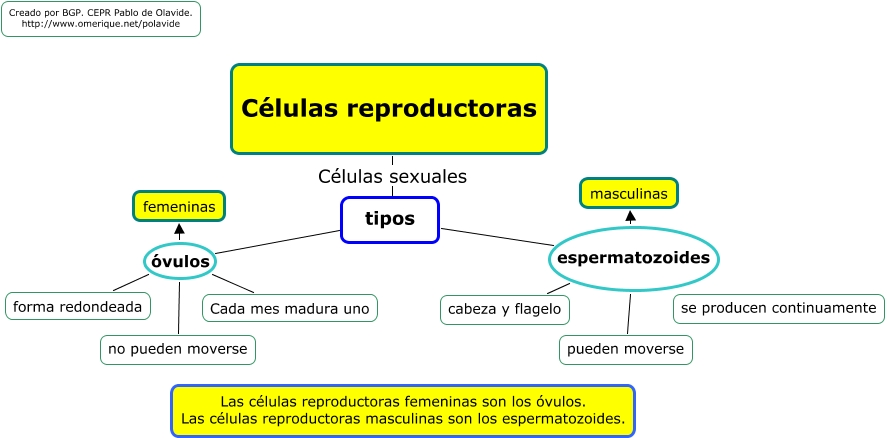 Este Cmap, tiene información relacionada con: cel_sexuales, Células reproductoras Células sexuales tipos, tipos espermatozoides pueden moverse, tipos óvulos femeninas, tipos óvulos no pueden moverse, tipos óvulos forma redondeada, tipos espermatozoides masculinas, tipos óvulos Cada mes madura uno, tipos espermatozoides cabeza y flagelo